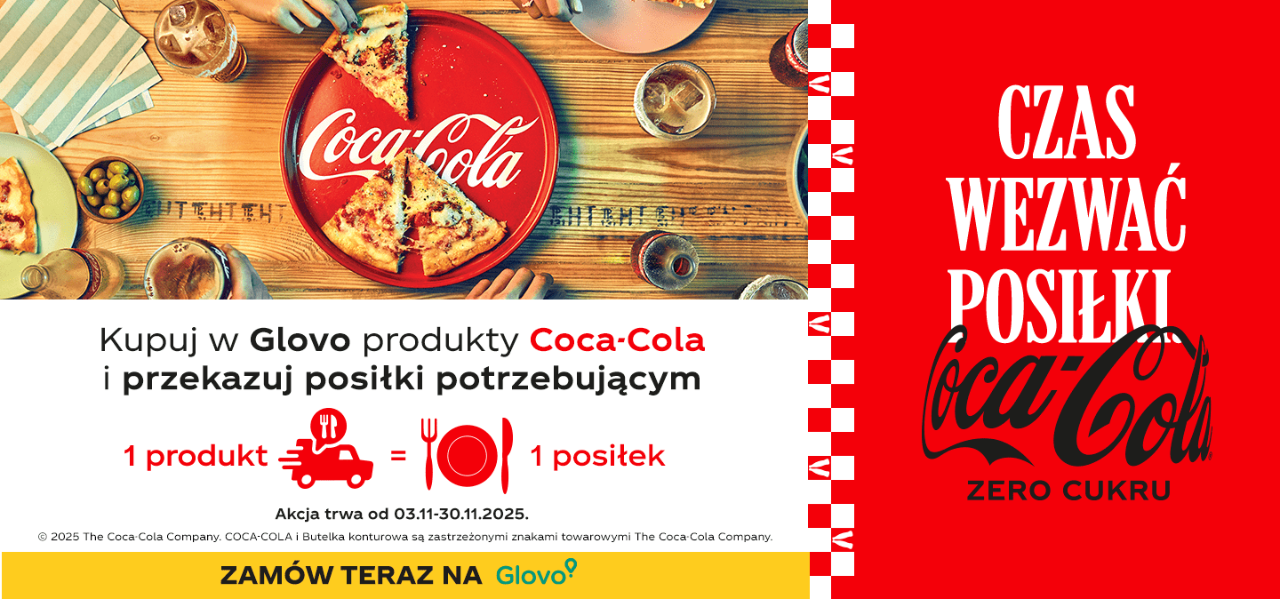 System Coca-Cola i Glovo ruszyły ze wspólną akcją „Czas wezwać posiłki”, której celem jest wsparcie najbardziej potrzebujących osób. Dzięki niej, firmy przygotują i dostarczą paczki żywnościowe dla beneficjentów Banków Żywności. Akcja potrwa do 30 listopada 2025 roku i będzie realizowana wyłącznie za pośrednictwem aplikacji Glovo.